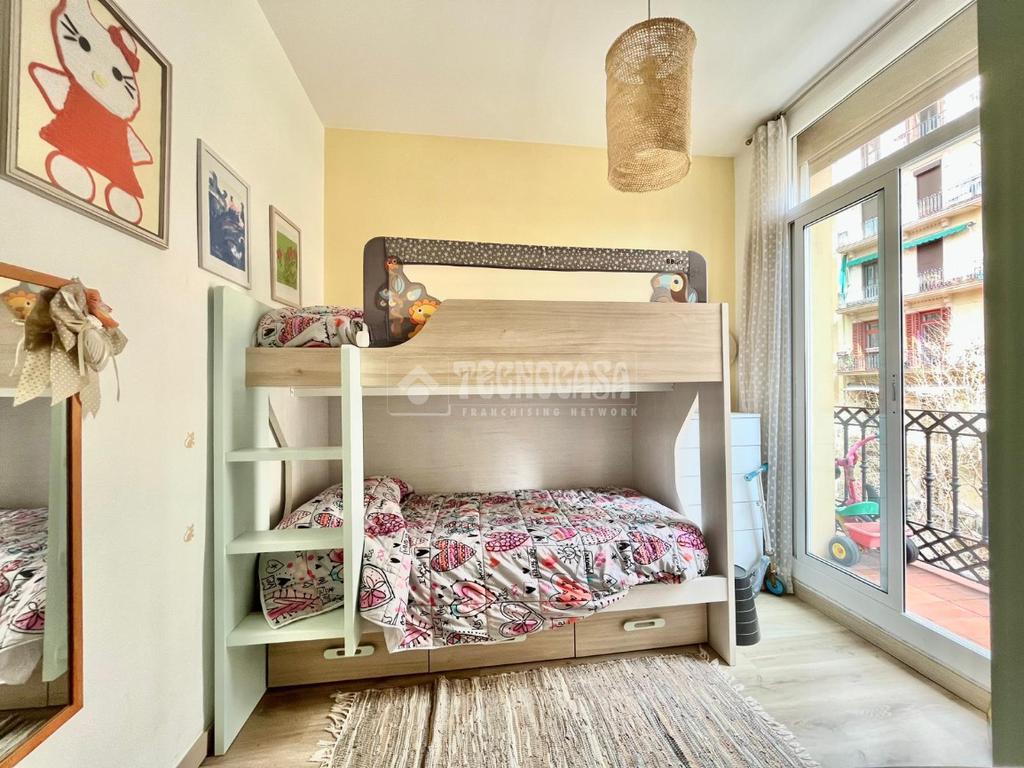 Piso con doble orientación, equipado con aire acondicionado de frío y calor, suelos de parquet. Techos falsos que recubren las vigas catalanas. Finca regia con ascensor y bonitos detalles antiguos.