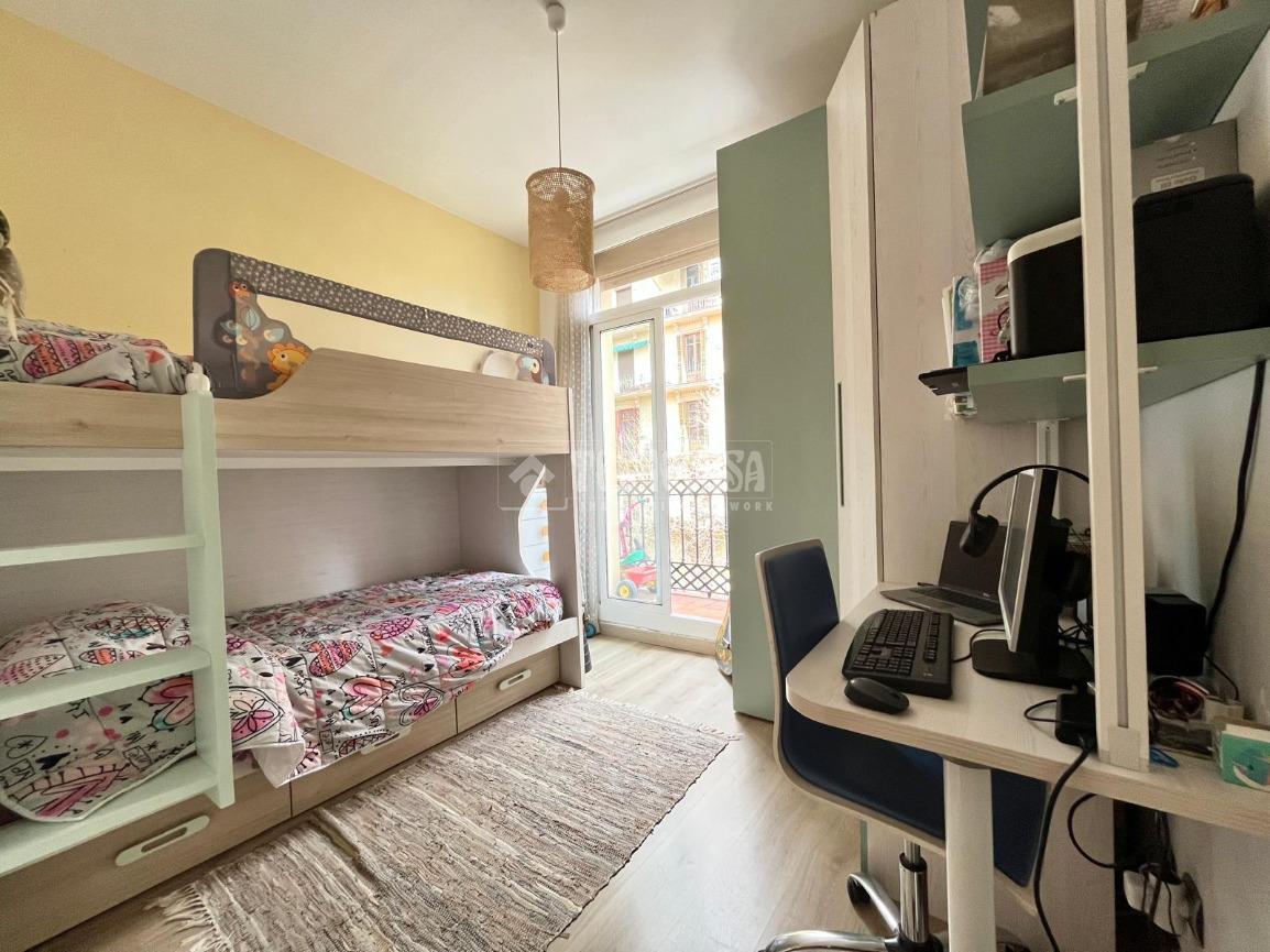 2 DORMITORIOS: 1 doble con acceso directo al balcón exterior a calle peatonal, gran armario, suelo de parquet y baño completo en suite. Otra habitación doble con dos camas en litera, también con acceso a un balcón exterior, armarios y escritorio hechos a medida.